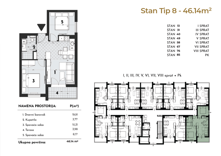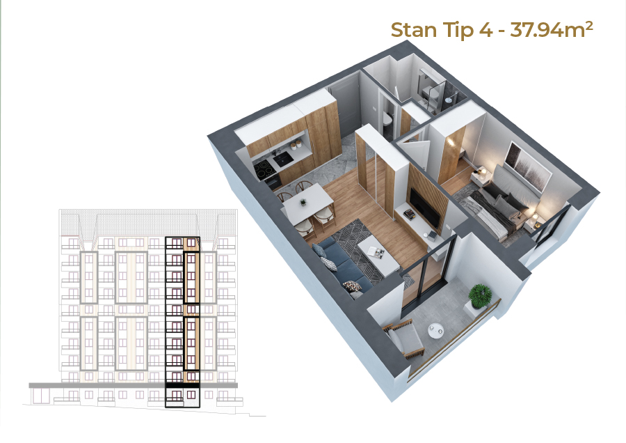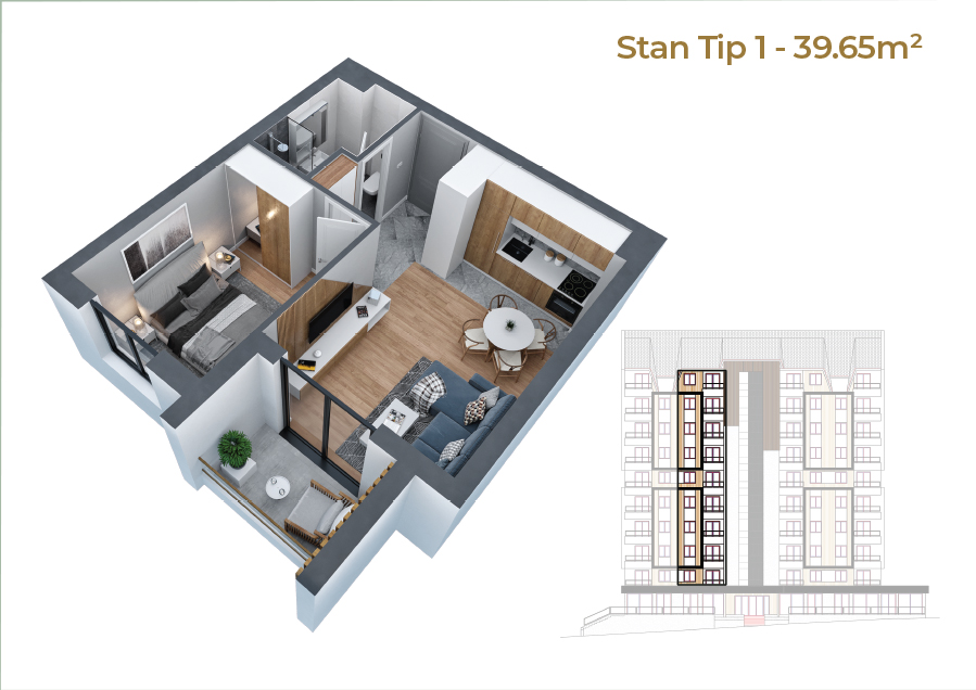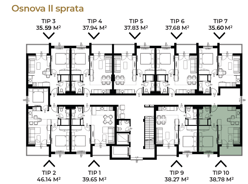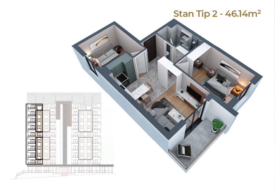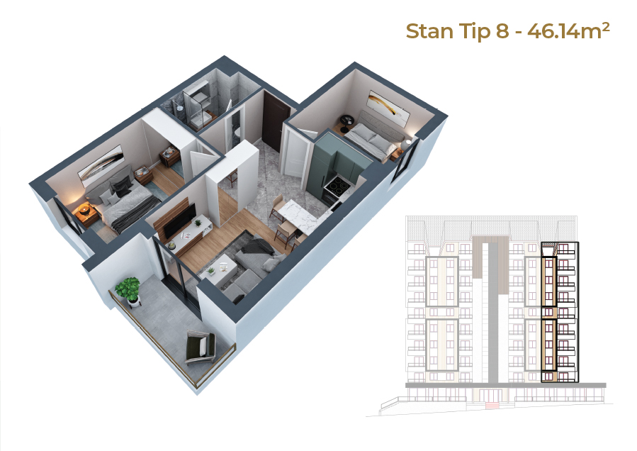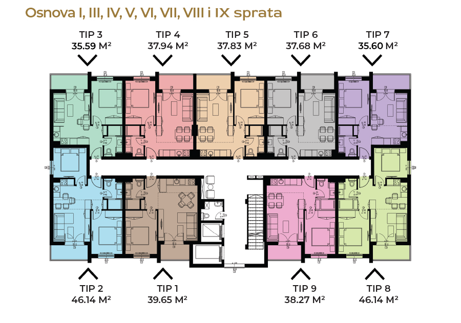 U okviru ovog objekta posedujemo sjajnu ponudu stanova različitih tipova i kvadrature. U nastavku možete da pregledate koje sve tipove stanova imamo u ponudi i da se opredelite za neki od njih.
